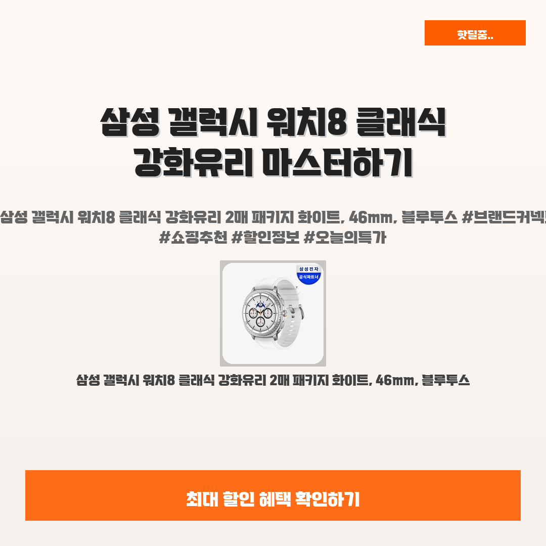 🛍️ 이 포스팅은 네이버 쇼핑 커넥트 활동의 일환으로,판매 발생 시 수수료를 제공받습니다.오늘 소개할 제품은 단언컨데,,그야말로 모든 갤럭시 워치8 클래식 사용자에게 필수인 제품이라구요여러분은 삼성 갤럭시 워치8 클래식 강화유리로 스크래치 문제를 걱정하고 계신가요?"삼성 갤럭시 워치8 클래식 강화유리 2매 패키지 화이트, 46mm, 블루투스"는 이런 고민을 해결해 줄 완벽한 솔루션이에요!진짜 사용해보면 강화유리의 차이를 확실히 느낄 수 있어요... "이제는 화면이 걱정 없네!"라는 반응이 쏟아졌답니다여러분들도 이 안심감 꼭 경험해보셨으면 좋겠어요 진심아 그리고 이 제품의 가격 대비 성능도 정말 뛰어나요... 제가 자부합니다판매량이 왜 이렇게 높은지 알겠더라구요... 사용 후기들도 늘 긍정적이니 걱정하지..