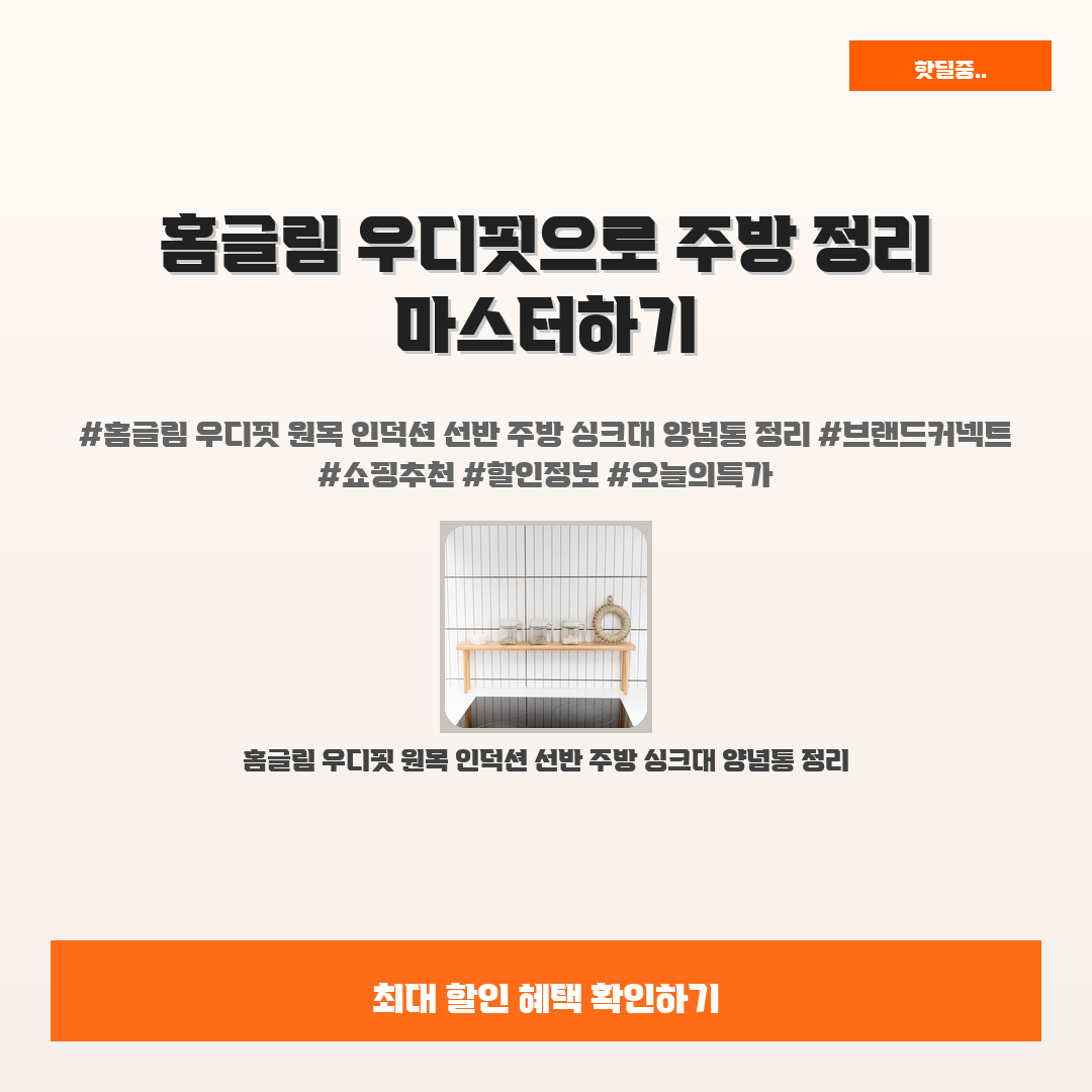 🛍️ 이 포스팅은 네이버 쇼핑 커넥트 활동의 일환으로,판매 발생 시 수수료를 제공받습니다.오늘 소개할 제품은 단연코,그야말로 주방 정리의 필수템입니다!요즘 주방이 혼잡해서 양념 통이 뒤섞여서 찾기 힘드셨죠? 그래서 저도 고민했었는데, 드디어 찾은 해답이 "홈글림 우디핏 원목 인덕션 선반"입니다!이 제품 덕분에 주방이 깔끔해지고, 양념통 정리가 쏙 쉬워졌어요! 이 행복을 여러분도 꼭 느껴보셨으면 좋겠어요.게다가 34% 할인 중이라 가성비도 최고죠! 친환경 원목으로 제작되어 ❤️환경에도 좋은 선택! 홈글림 우디핏을 지금 바로 확인하세요!※ 이거 진짜 제가 직접 써보고 쓰는 리뷰예요 광고 아님!!홈글림 우디핏 원목 인덕션 선반 주방 싱크대 양념통 정리34% 75,000원49,000원아텍스 직영몰 지금 구매하..