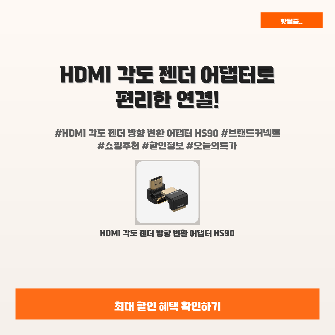 🛍️ 이 포스팅은 네이버 쇼핑 커넥트 활동의 일환으로,판매 발생 시 수수료를 제공받습니다.오늘 소개할 제품은 단언컨데,,그야말로 편리함을 전하는 HDMI 각도 젠더 방향 변환 어댑터 HS90입니다!여러분, 깔끔한 연결을 위해 고민해본 적 있으신가요? HDMI 각도 젠더 방향 변환 어댑터 HS90는 여러분의 그런 걱정을 단숨에 해결해 줄 친구예요! 연결이 어려웠던 장면에서 이젠 간편하게 사용할 수 있답니다.매번 전선 때문에 혼란스러웠던 경험, 이제 그만하세요. 이 어댑터가 그 모든 스트레스를 없애 줄 거예요. 사이즈는 작지만 그 효과는 크니까요!게다가 가성비까지 뛰어나며 할인가 7,900원으로 만나볼 수 있으니, 주저할 필요가 없어요! 저도 이젠 HDMI 각도 젠더 HS90 덕분에 삶이 한층 편해졌어요...