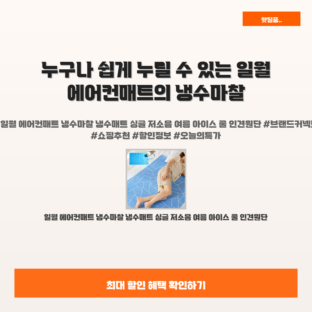 🛍️ 이 포스팅은 네이버 쇼핑 커넥트 활동의 일환으로,판매 발생 시 수수료를 제공받습니다.여름의 열기를 날려줄일월 에어컨매트 냉수마찰을 소개합니다!더위에 지쳐서 잠 못 이루는 여름밤, 여러분도 한 번쯤은 이런 고민을 하셨죠?그럴 때 필요한 건 바로 "일월 에어컨매트 냉수마찰"입니다. 저소음으로 설계되어 있어, 시원한 잠자리를 필수적으로 만들어줍니다.이 제품이 지닌 장점은 단순히 냉수매트 이상의 것입니다. 아이스 쿨 인견원단으로 만들어져 정말 시원하답니다! 여름 더위를 잊고 꿀잠을 즐길 수 있는 기회를 놓치지 마세요.게다가 가성비도 훌륭하고, 재구매율이 높은 이유를 깨달을 수 있을 것입니다. [상품명]으로 여름을 시원하게 보내세요!※ 이거 진짜 제가 직접 써보고 쓰는 리뷰예요 광고 아님!!일월 에어컨매트..